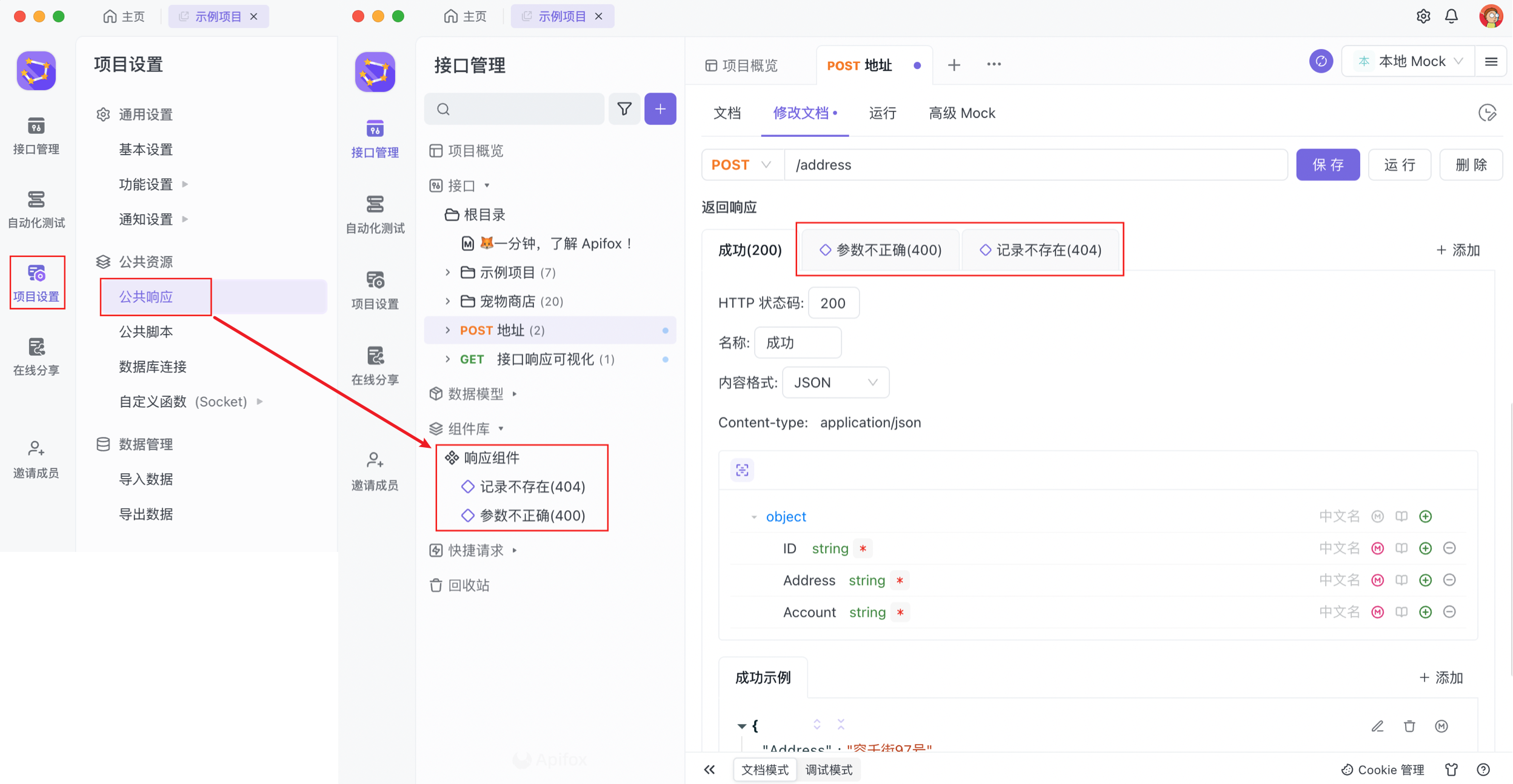 原“公共响应”现已迁移至“组件库” → “响应组件”。你可以在响应示例中更加方便的引用公共响应组件。
