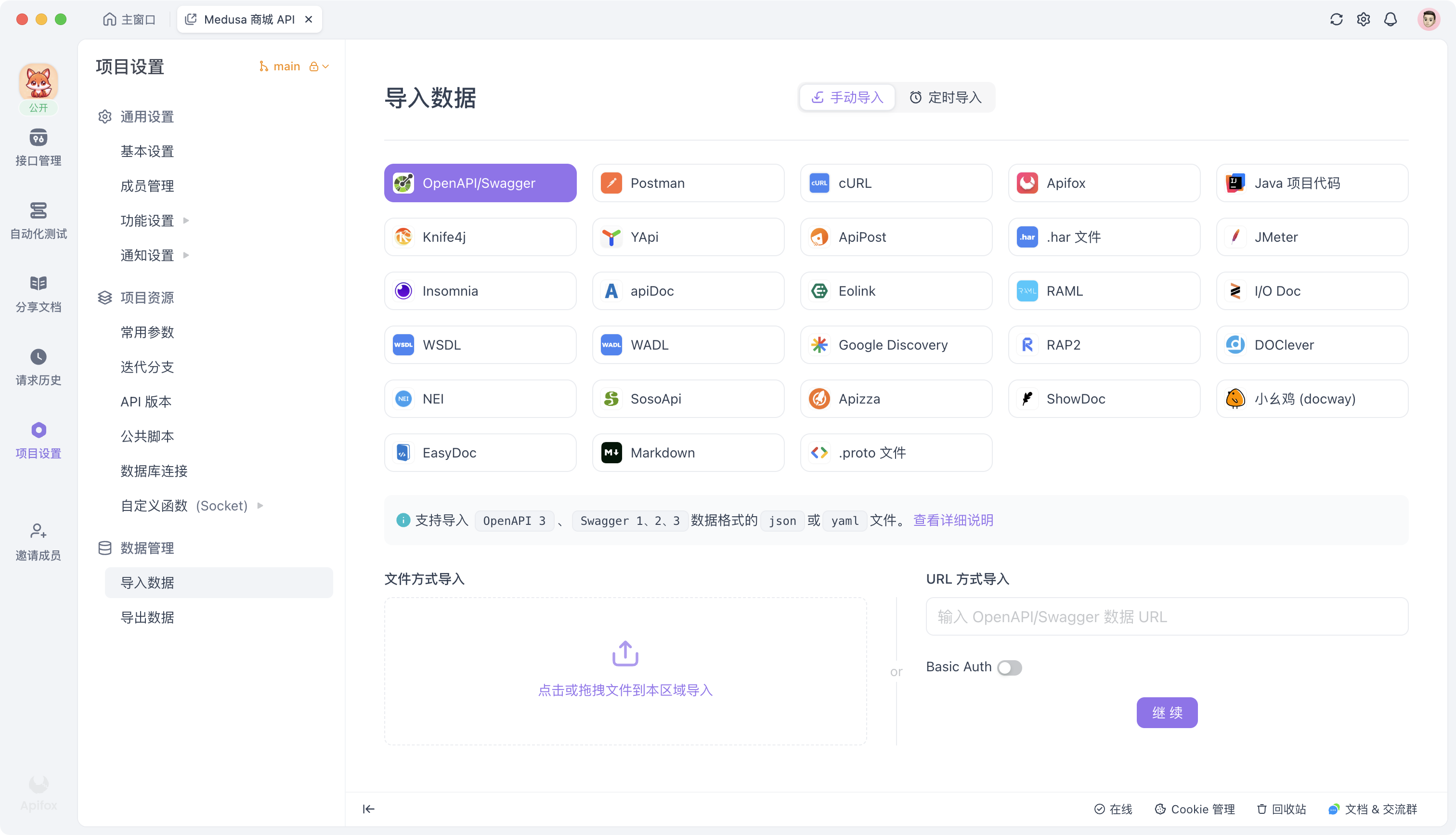 导入 OpenAPI/Swagger 格式只包含