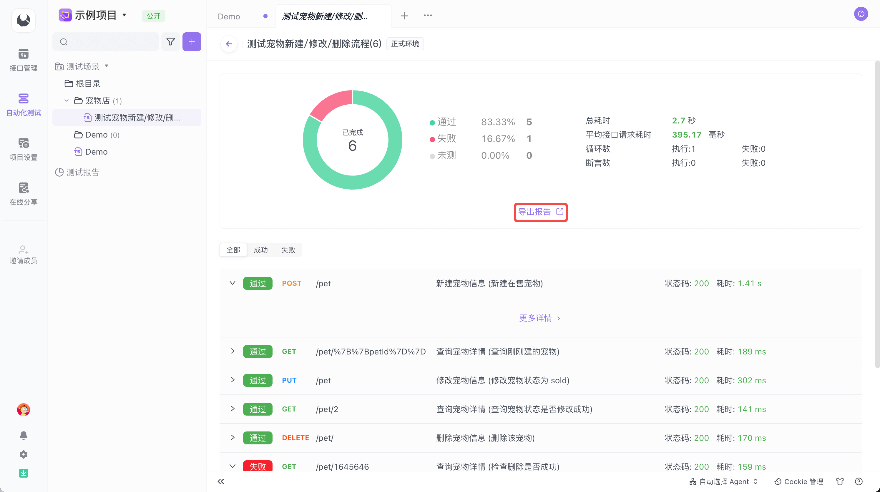 自动化测试运行结束后将输出一份测试报告,你可以在此处直观地看到哪些接口没有通过测试。