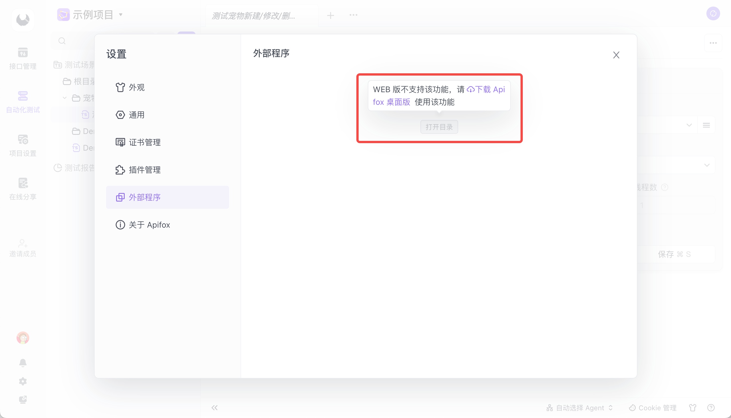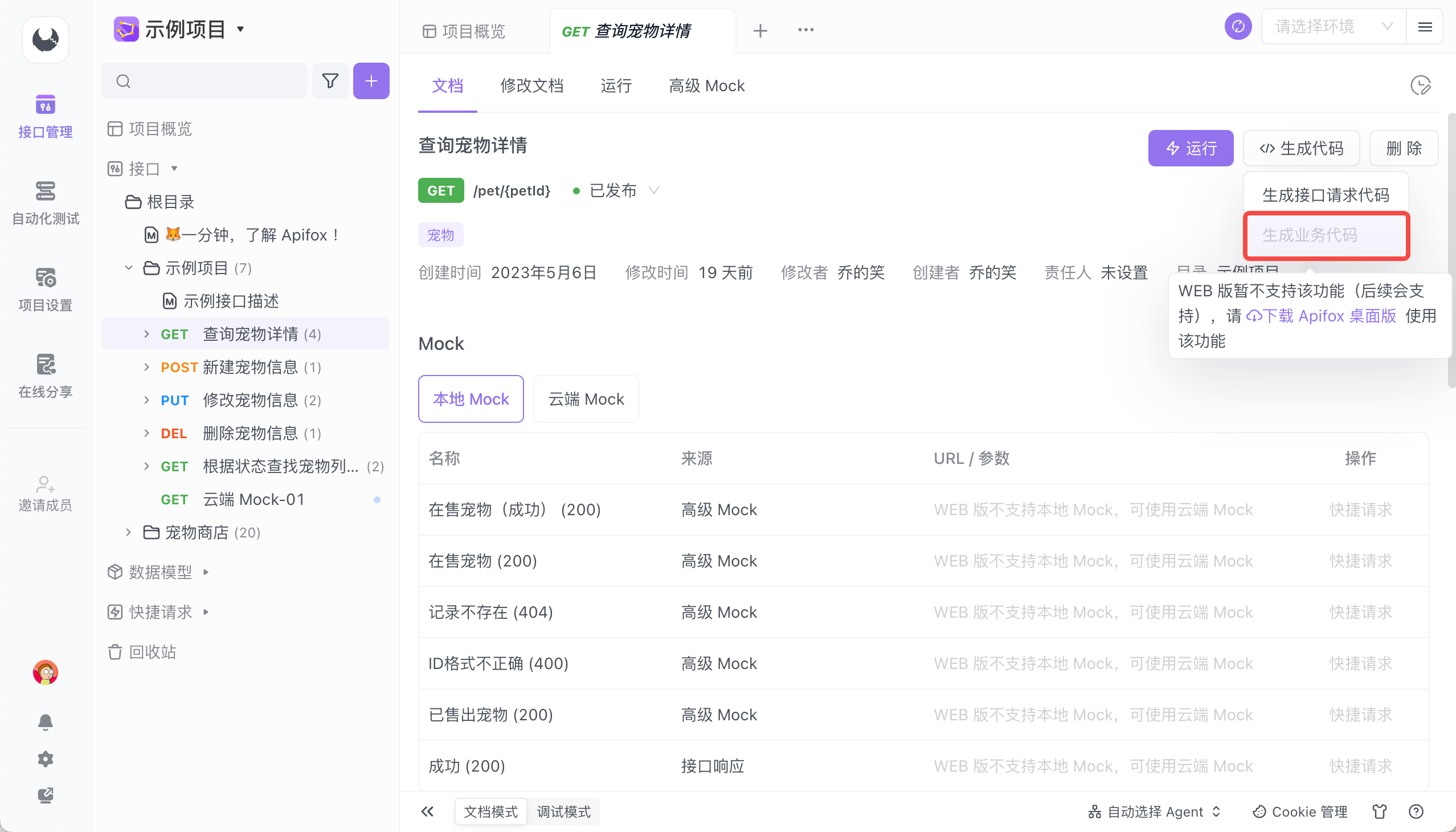 Web 端与客户端在主要流程的使用上没有明显差异,都能够满足团队内的接口协作需求,但以下功能存在差异。