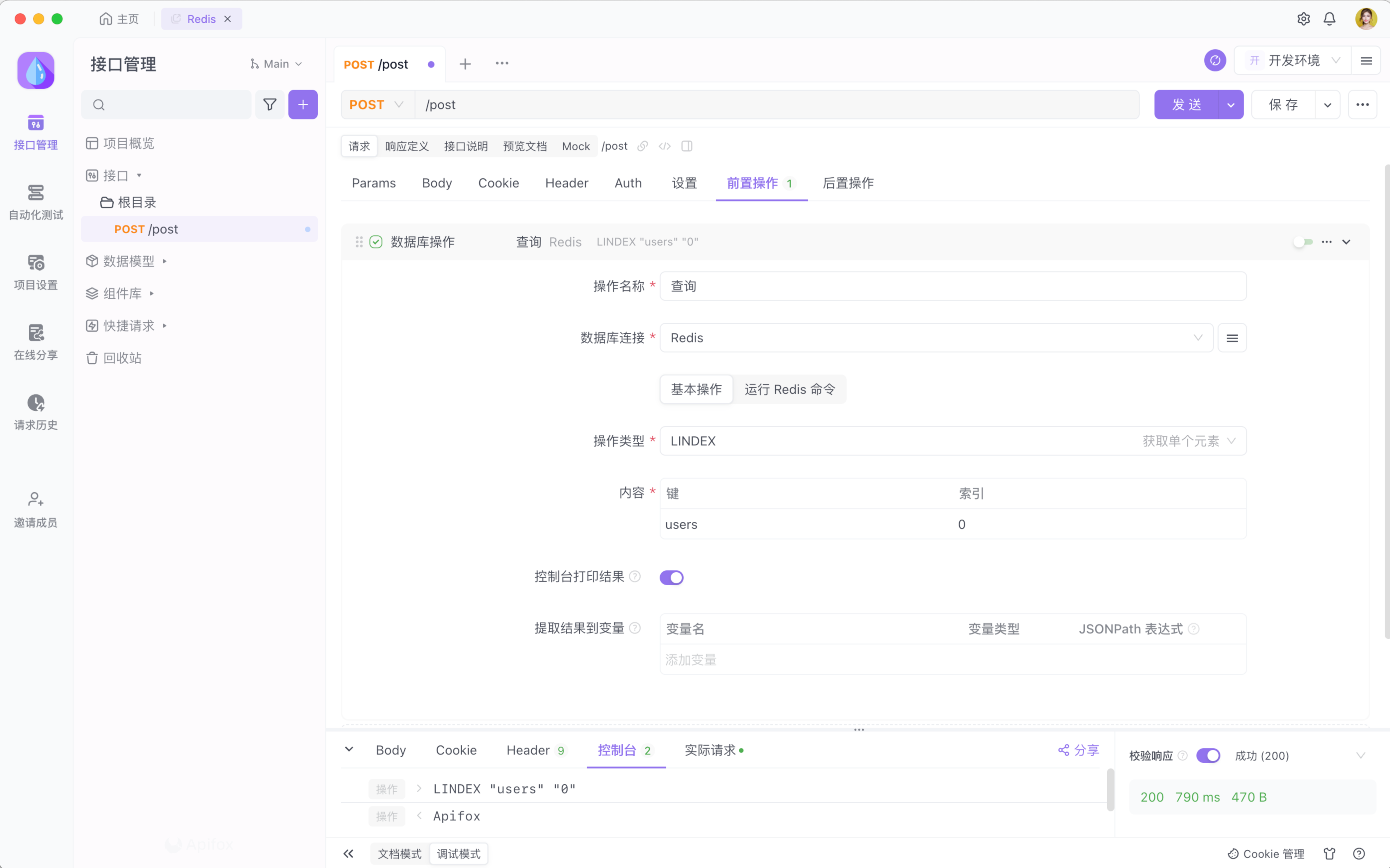 连接 Redis 数据库是 Apifox 企业版功能,请添加企业微信客服了解更多信息。