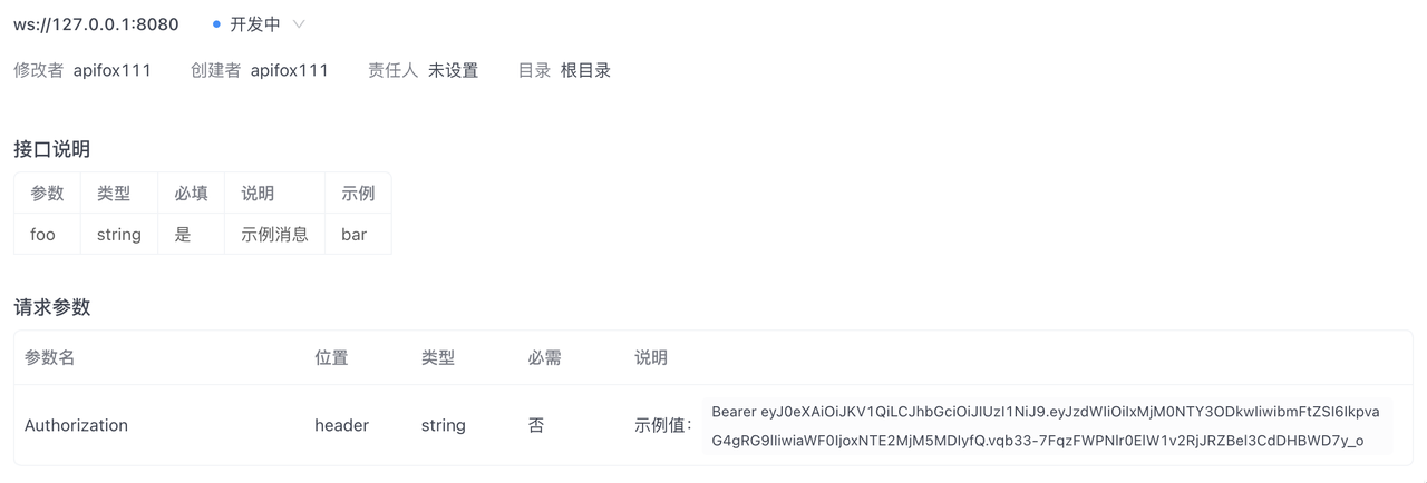 - Apifox 版本号需 ≥ 2.2.32 才能管理 WebSocket 接口。